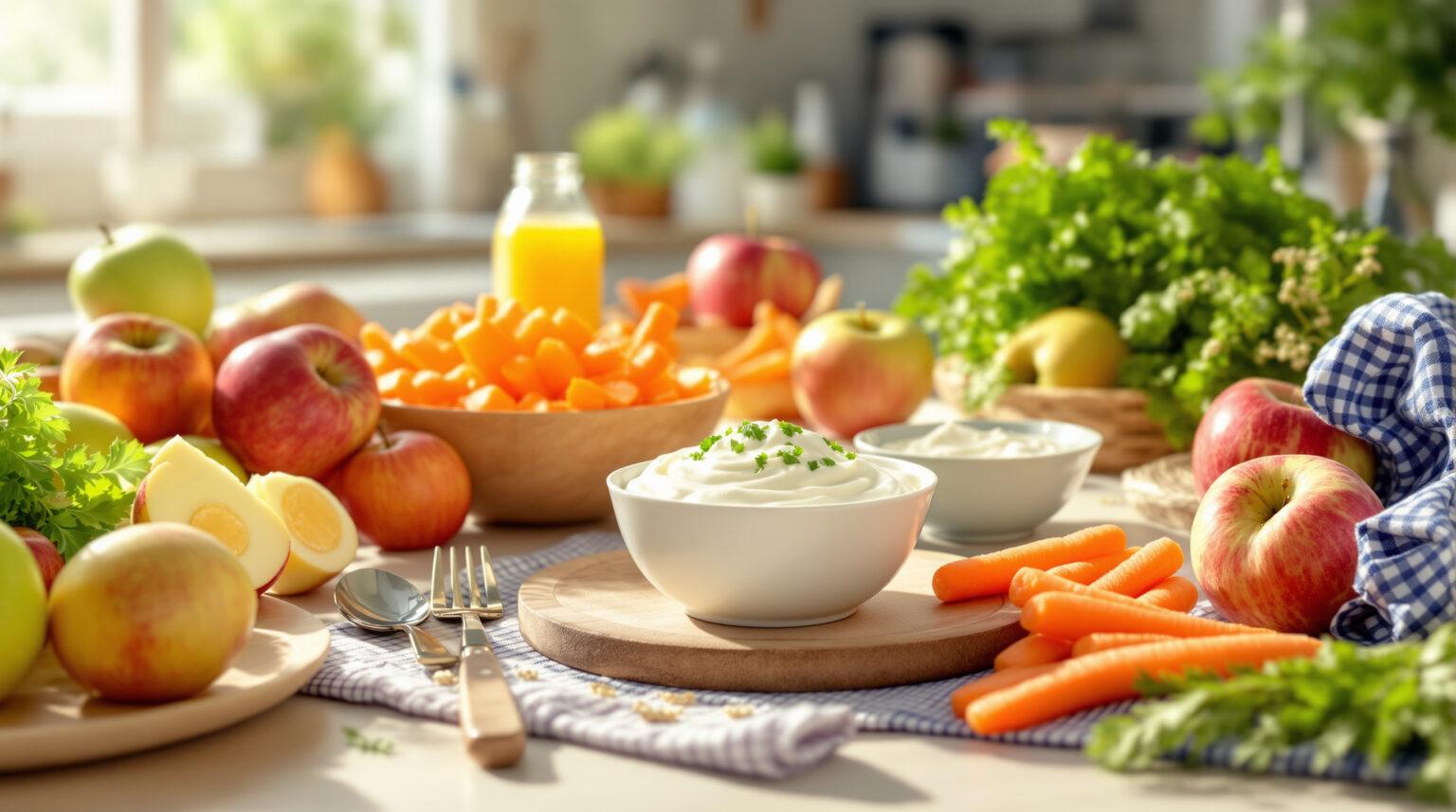 - Yaourt nature avec fruits frais : Un yaourt nature, associé à des morceaux de pomme ou d’ananas, offre un excellent apport en protéines et en vitamines.